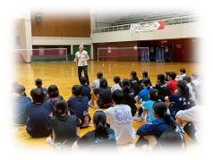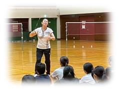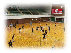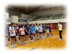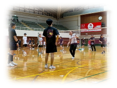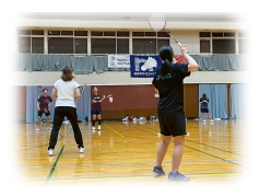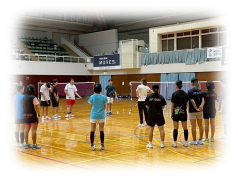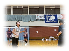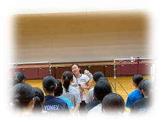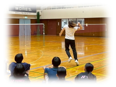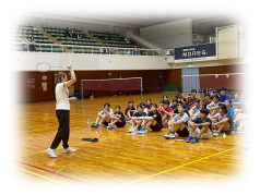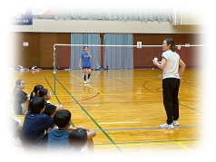 まず クリアーなどの 見本を 講師の先生に見せてもらいながら 各コートに分かれて お互いが 打ち合う形で講習が行われました。