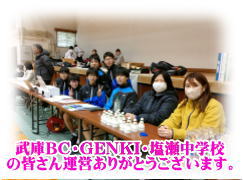 令和6年3月20日(水) 運営当番 武庫BC・GENKI・空の翼・塩瀬中学校の皆さんご協力有難うございます。