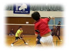 9時00分から競技開始 終了は、20時45分終了 6時30分からバドミントンアカデミーで講習会が行われました。